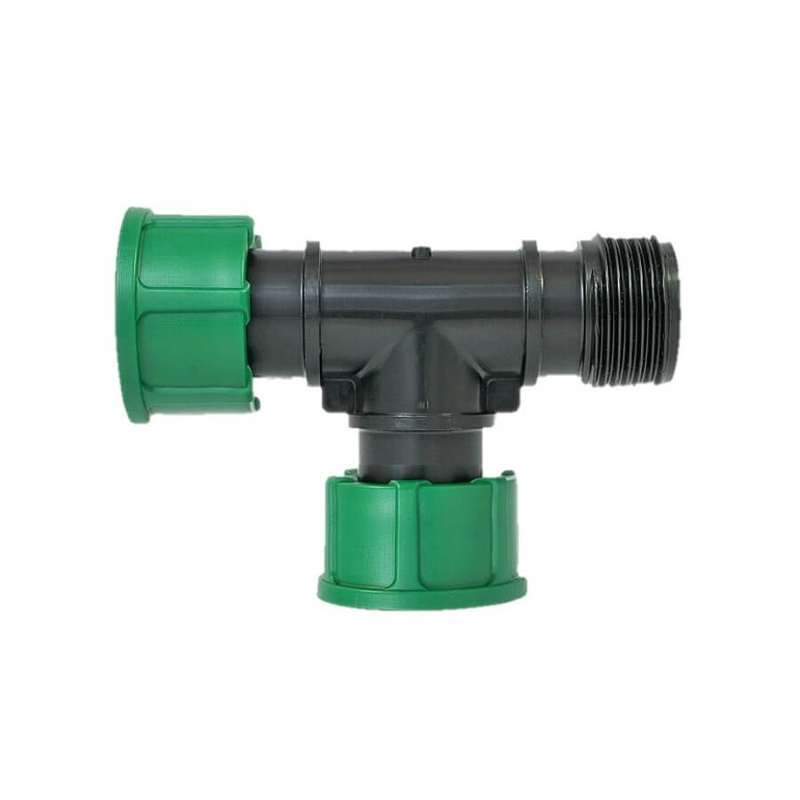 Трійник з накидною гайкою 1"ВРх1"ВРх1"ЗР - це пластиковий різьбовий трійник з зовнішньою і внутрішньою різьбою (накидною гайкою). Він часто використовується для створення підземного колектора (гребінки) з електромагнітними клапанами, щоб компактно розмістити обладнання в один ряд.