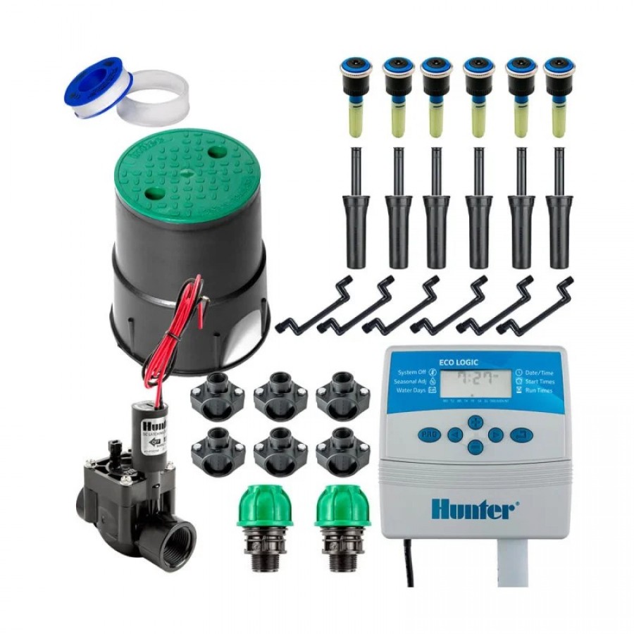 Ключовими елементами комплекту є електромагнітний клапан Hunter PGV 100 та контролер Hunter ELC 401i-E, які гарантують точний контроль та автоматизацію режимів поливу. Крім того, клапанний бокс Irritec Mini забезпечує надійний захист клапана від зовнішніх впливів.
