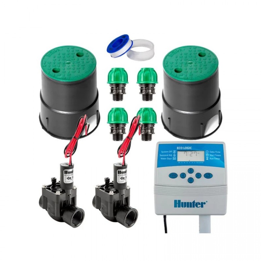Комплект Hunter пропонує надійне та ефективне рішення для автоматизації вашої системи поливу. У цьому комплекті включені всі необхідні компоненти для створення та управління двома окремими зонами поливу.