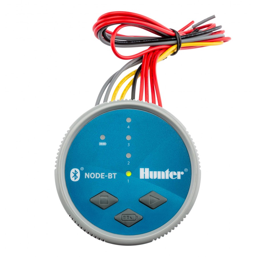 NODE-BT-400 - це контролер поливу від компанії Hunter, який використовується для контролю за 4 зрошувальними зонами. Обладнання автономного типу, тому не вимагає підключення до електромережі. Працює від кількох акумуляторних батарей. Має розширений функціонал, який дозволяє налаштовувати режими іригаційною системою як у ручному режимі, так і віддалено зі смартфона.