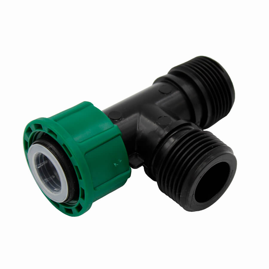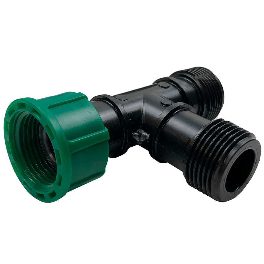 Тройник с накидной гайкой 1 "НРх1 "НРх1 "ВР - это пластиковый резьбовой тройник с наружной и внутренней резьбой (накидной гайкой). Он часто используется для создания подземного коллектора (гребенки) с электромагнитными клапанами, чтобы компактно разместить оборудование в один ряд.