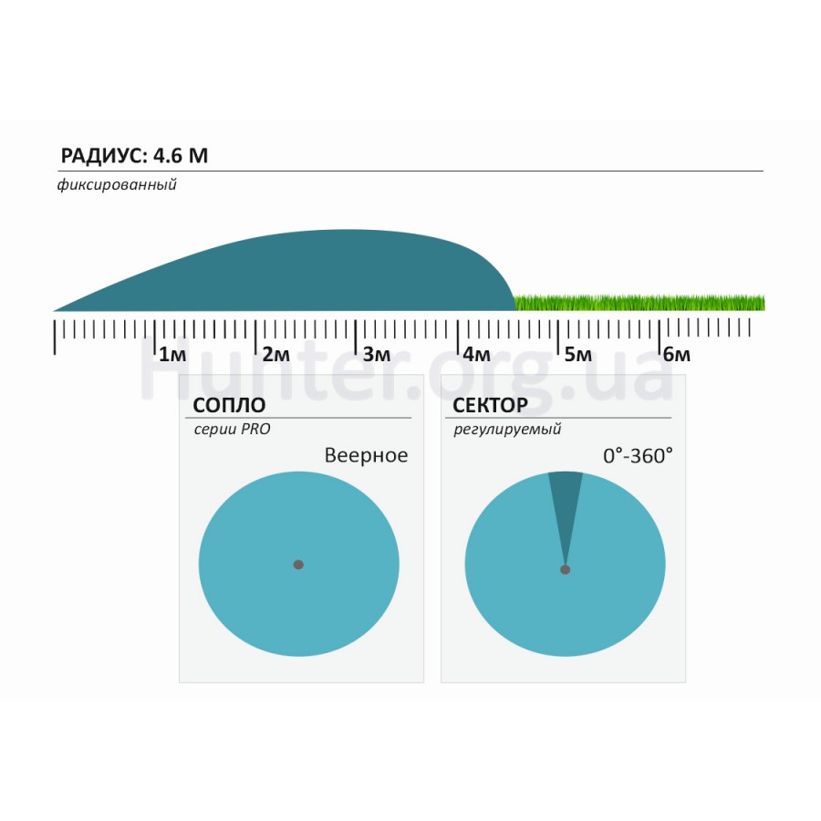 - Радиус полива: 4,6 м