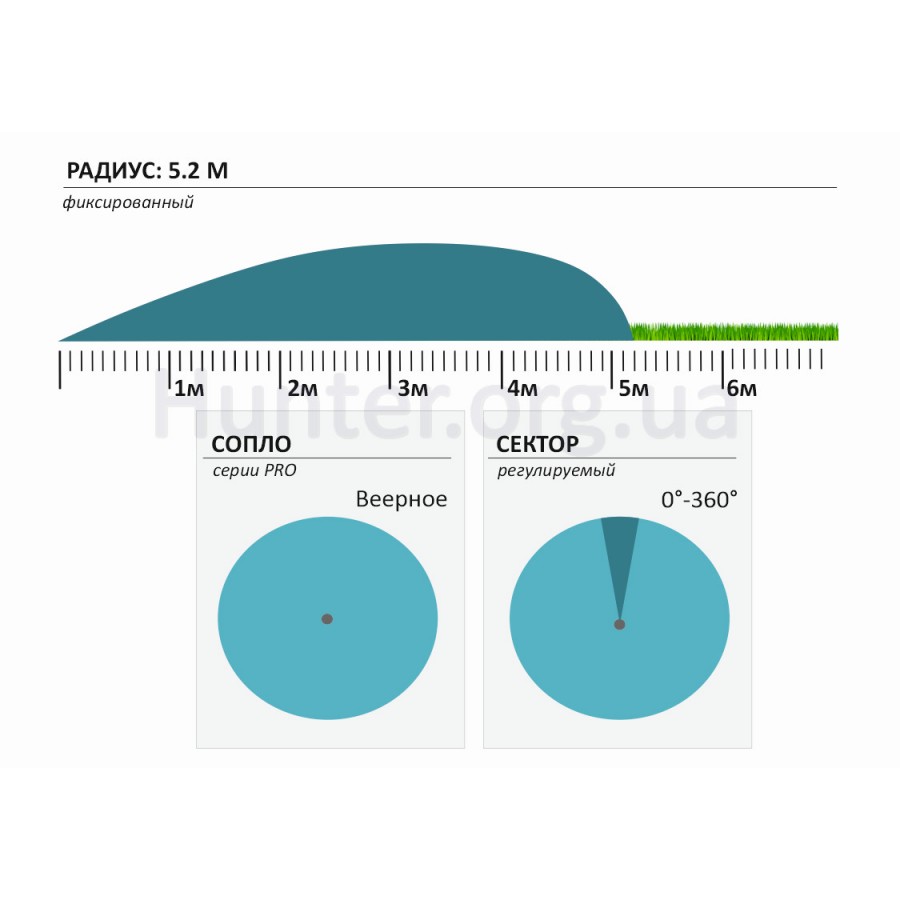 - Радиус полива: 5,2 м