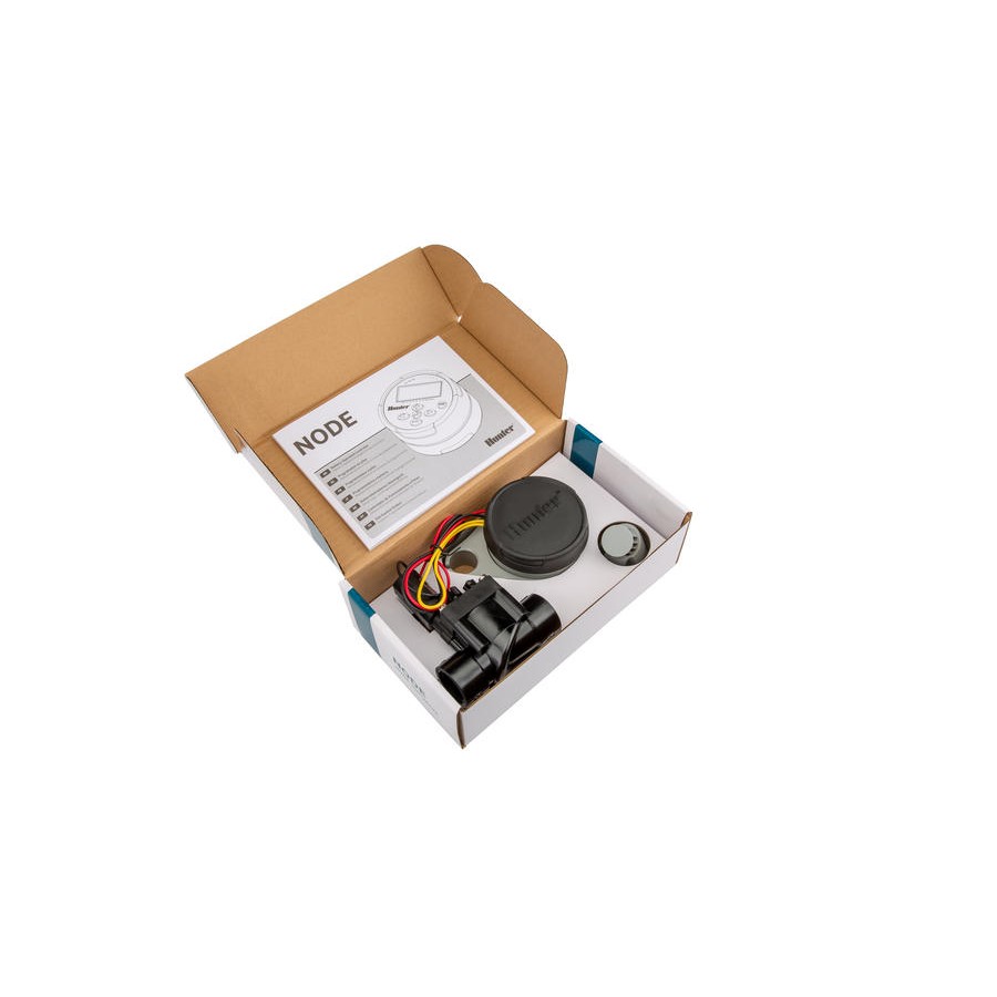 Таймер полива NODE-100 легко и просто устанавливать без дополнительных деталей, так как он подключается непосредственно к соленоиду электромагнитного клапана. Вся линейка NODE имеет водонепроницаемый корпус с уровнем защиты IP68, поэтому он с лёгкостью сохраняет работоспособность при наводнениях. Максимальная глубина погружения: до 3,7 м. Оборудование имеет ручной тип управления (6 кнопок). Есть жидкокристаллический экран, на котором отображается режим работы, время и другие параметры. Программные возможности: