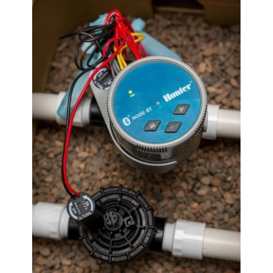 Контроллер полива Hunter NODE-BT-100-VALVE-B — это автономный таймер для контроля за поливом на одну оросительную зону, который работает от аккумуляторных батарей. Имеет пять различных способов установки. Подходит для монтажа на трубы, электромагнитные клапаны, в коробе или на плоской поверхности. Функционал данной модели идентичен с опциями, которые имеют другие конфигураторы серии NODE-BT. Основное отличие заключается в том, что в комплекте к NODE-BT-100-VALVE-B идёт клапан PGV-101G и фиксирующим электромагнитным клапаном постоянного тока с резьбой BSP.